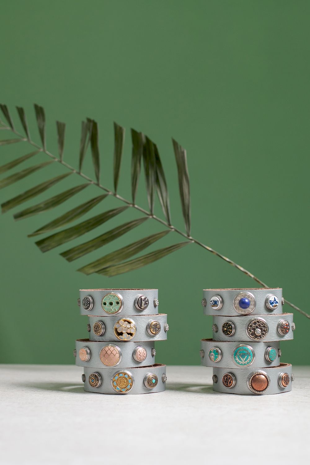 Изделие изготовлено вручную из натуральной дубленой кожи растительного происхождения, а поверхность материала обладает благородным металлическим блеском. Указанная цена не включает стоимость элементов chunk®. Элемент chunk® из линейки Original (в центре) и элементы chunk® из линейки Petite (по обе стороны от центрального элемента) приобретаются дополнительно.